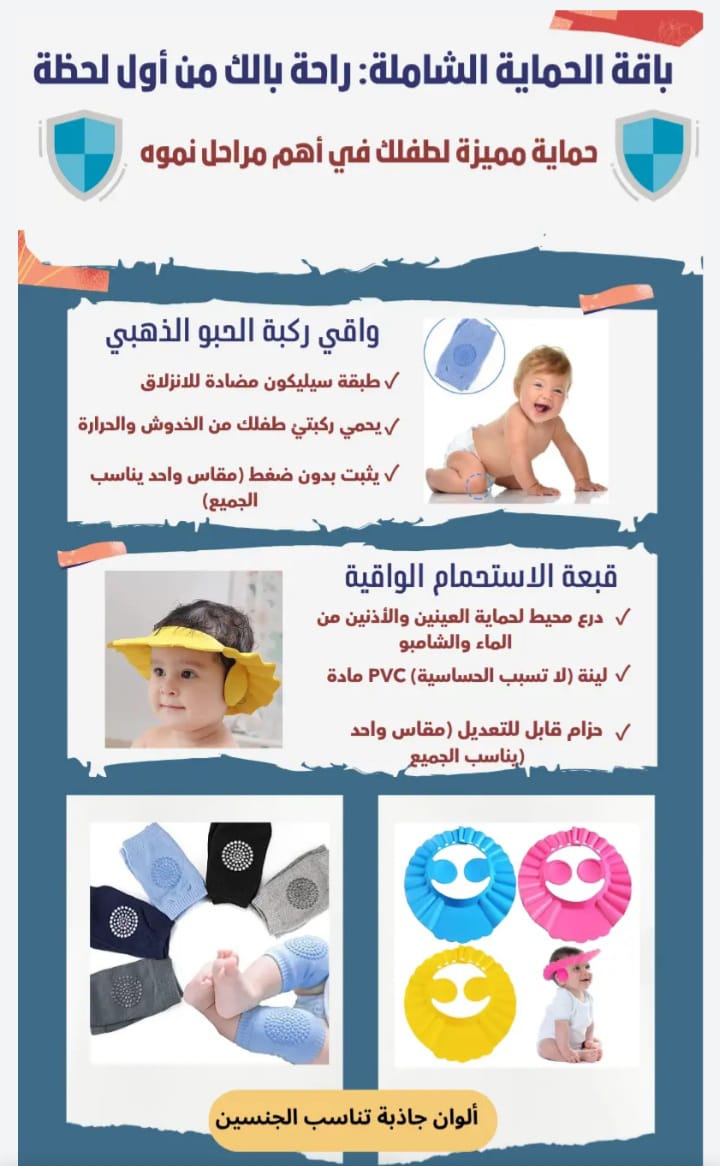 عرض محدود باك فيه قبعة حماية العينين والاذنين اثناء الاستحمام + واقي الركبة للاطفال بثمن